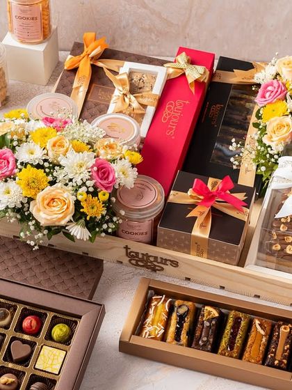 - Everything’s packed with care - from our fancier wooden crates and branded boxes to those classic wicker baskets. Always topped off with pretty ribbons or sometimes phoolon ka touch (a touch of flowers) if you like.