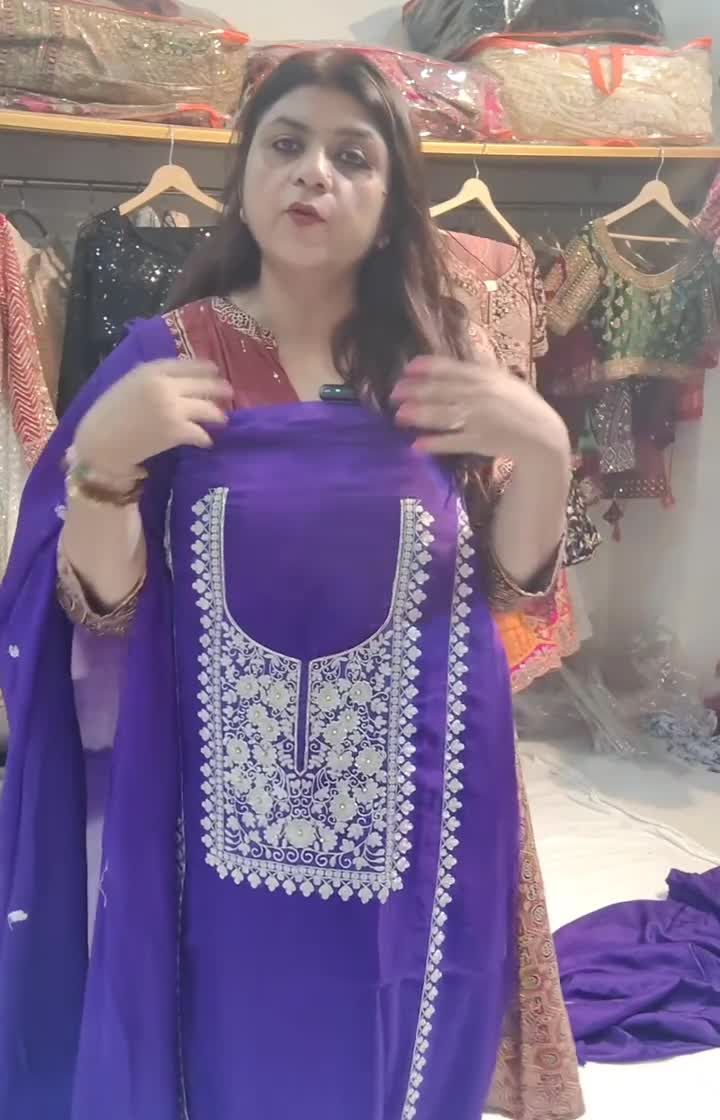 Besides lehengas and gowns, I also manufacture a beautiful range of unstitched suit materials and sharara sets. These are perfect for smaller functions, festivals, or for building your trousseau. You get high-quality fabrics like tissue and silk with my signature embroidery work.