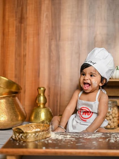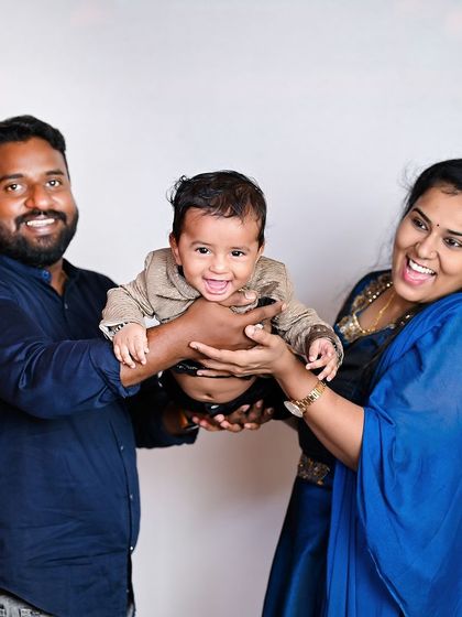 Hey! Nanna hesaru Monisha. I’m the face behind Trendz Baby Studio, Bangalore. Photography started with my own kandha (little one) - his Ayyappa Swamy shoot at our native place was a dream come true, and he just posed like a pro! Sometimes my clients become like family, especially when their VIP guests (dogs!) join shoots. Avru makkaligu kaDime illa, ashtu naughty! (They’re as naughty as kids). These moments make this work so special for me.