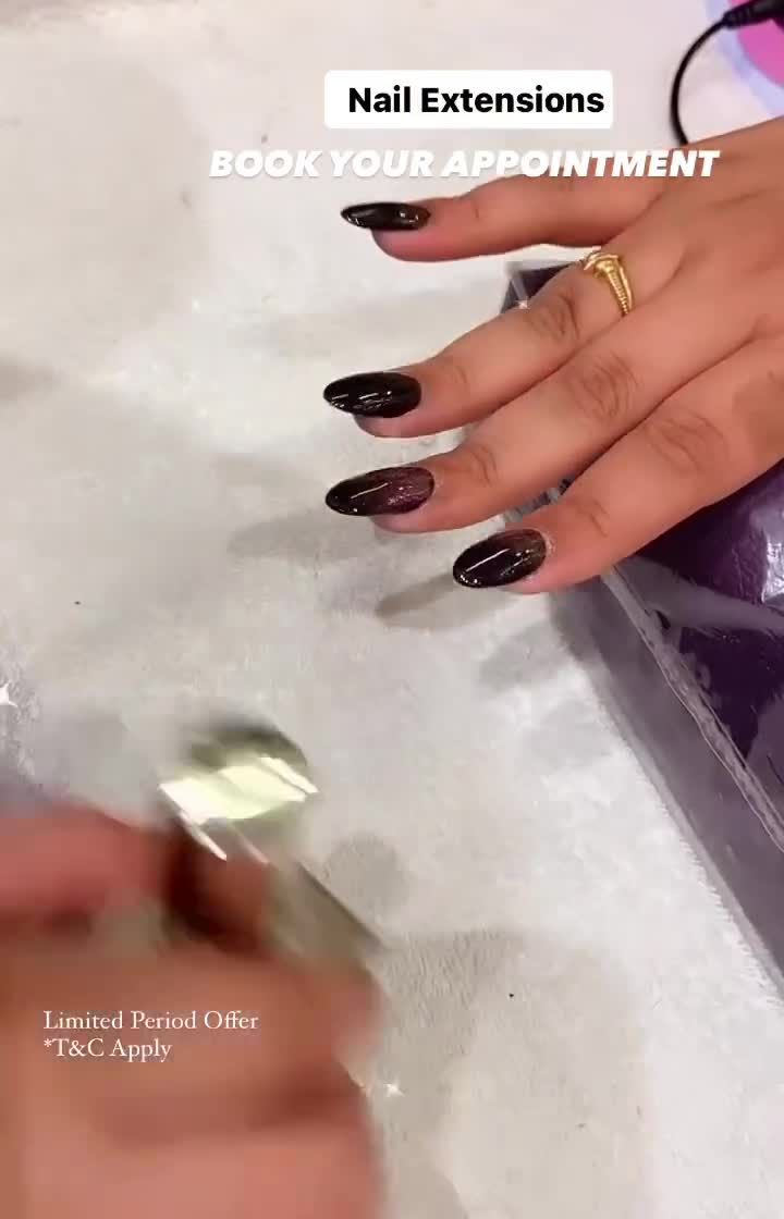 For when you want your nails to make a statement, I offer a range of glamorous finishes. You can choose from dazzling full glitter designs, elegant glitter tips, mesmerizing cat-eye effects, or high-shine chrome manicures.