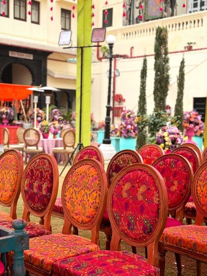 I design pre-wedding ceremonies that are bursting with color, tradition, and fun. From a Rajasthani mela theme with pop art backdrops to a sun-kissed Haldi with elegant floral decor, I ensure these daytime events are as memorable and meticulously planned as the main ceremony.