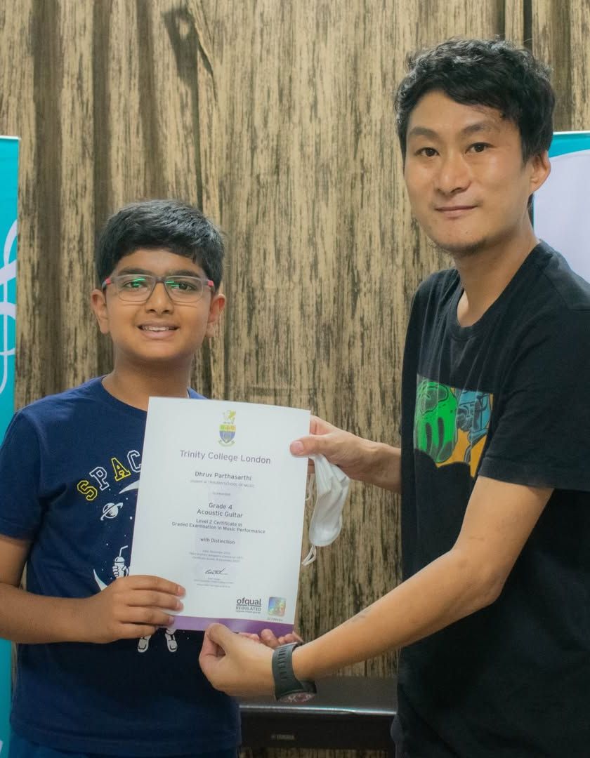 We specialize in preparing students for internationally recognized music grade exams from boards like ABRSM, Trinity College London, and Rock School. This collection showcases our students on their exam days and proudly displaying their hard-earned certificates, a testament to their dedication and our structured coaching.