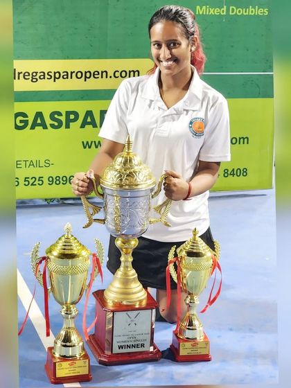 Still a competitive player - Red FM Red Shakti Award winner, recent Ladies Singles and Mixed Doubles champ – trophies keep coming.