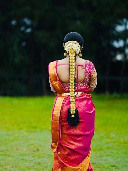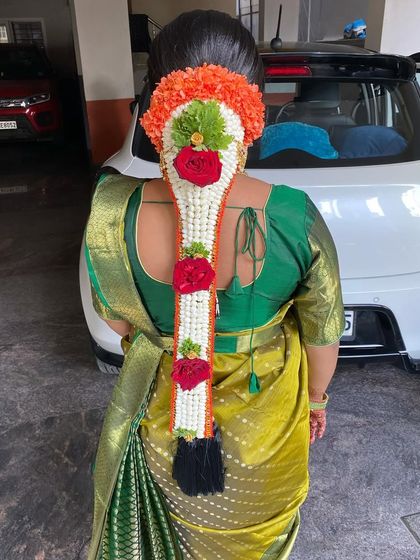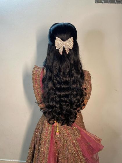 I travel to you - mostly in Bangalore and Mysore. I coordinate with your makeup artist, and can do swalpa crimping (a little volume) if you like, or keep it totally natural. Your comfort is the main thing. If you want something simple, fancy, or somewhere in between, just tell me what you have in mind.