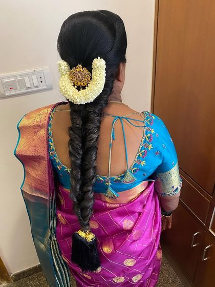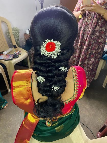 I specialize in creating authentic hairstyles for traditional ceremonies like Varpooja and cultural events. My expertise includes intricate braiding techniques enhanced with traditional accessories and floral decorations.