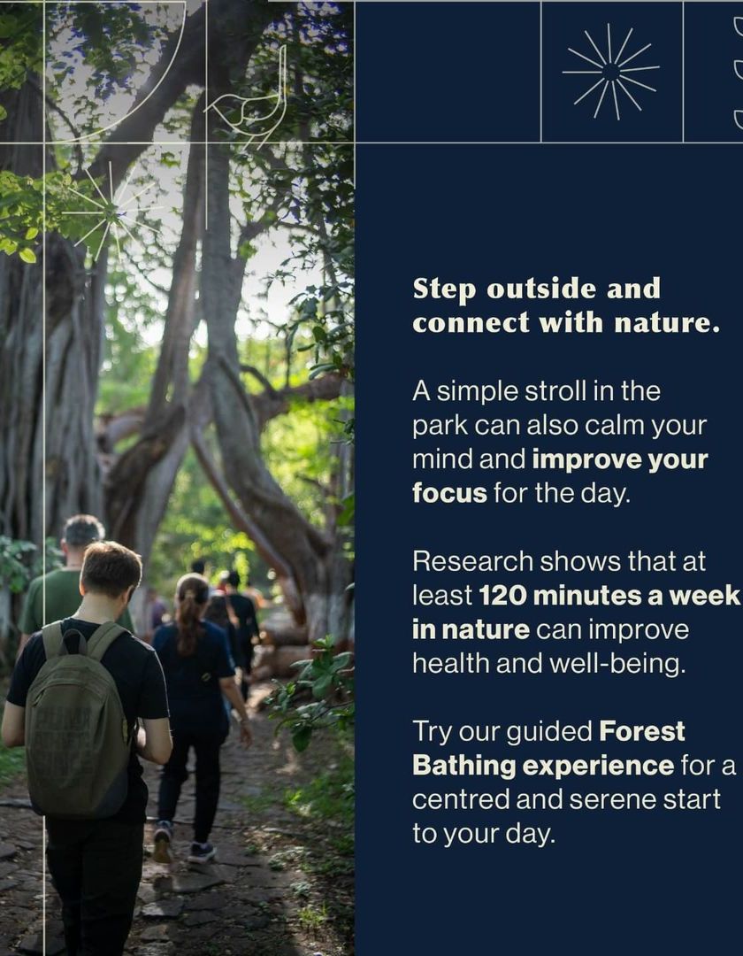 Slow down and reawaken your senses with Shinrin-Yoku, the Japanese practice of forest bathing. This is not a hike or a trek, but a guided, slow, and mindful walk where you are invited to connect with the natural world through sensory experiences.