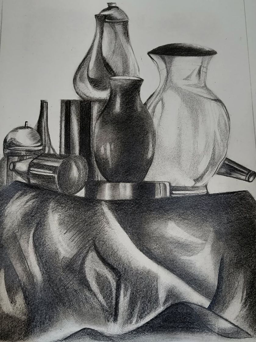This collection shows my work in charcoal and ink, focusing on light, shadow, and form. I create detailed still life arrangements in the studio and also enjoy doing live urban sketching to capture the energy of a place.