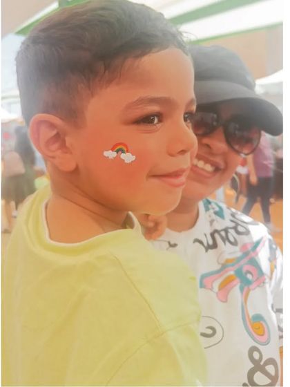 Perfect for guests who want a small touch of magic, I offer a variety of quick and beautiful designs for cheeks and arms. These include popular choices like unicorns and rainbows, always finished with an optional dash of sparkle.
