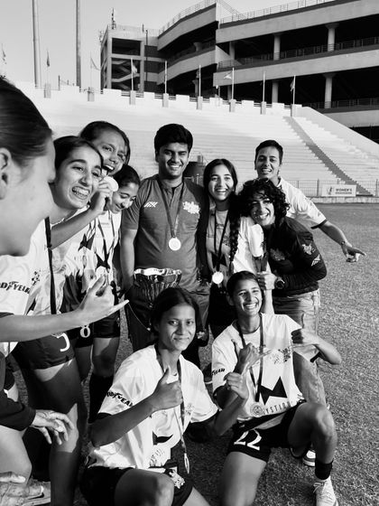 You might've spotted us in that OLX ad, car stuffed with footballs, cones, and gear - no space left for anyone else! That's pretty much how we started: full-on hustle, ground level, teaching little ones the basics, 'matlab agar sab kuch car mein daal diya toh baithne ki jagah nahi' (if I fill the car with everything, you can't sit). For us, sports is about those first kicks, the small wins, and helping every kid and pro write their own story. Champions or not, that’s what we live for.