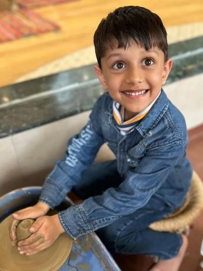 - Pottery: Hands-on modeling with natural terracotta clay (200g-500g) and use of child-sized electric potter's wheel.