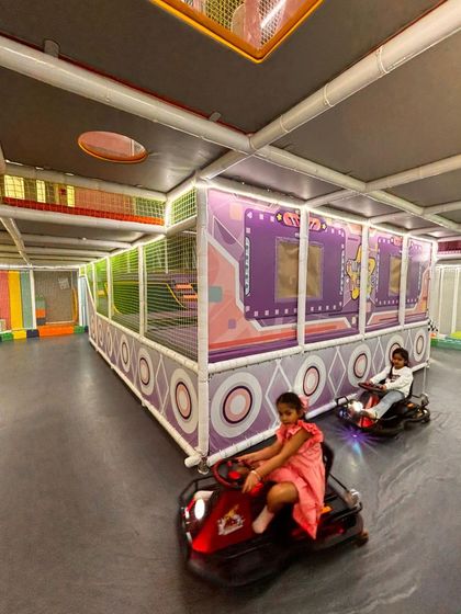We offer a 10,000 sq ft indoor playground in Delhi NCR with over 75 activities for kids aged 9 months to 13 years, including slides, trampolines, go-karts, pretend play zones, and a café for parents, all supervised and kept clean.