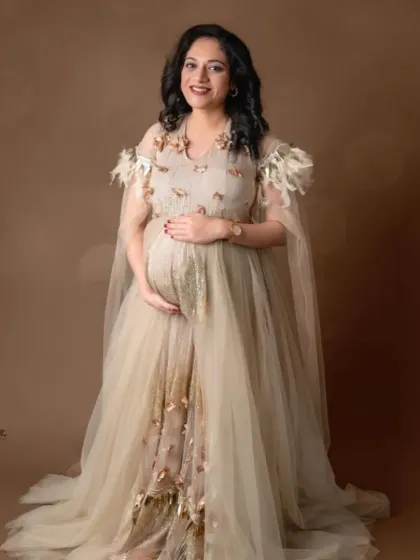 We rent and sell a glamorous collection of maternity gowns for photoshoots and baby showers across India. Our goal is to help you celebrate your journey with elegance and comfort.