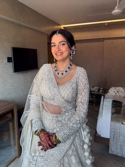 I specialize in creating complete bridal looks that blend traditional Indian aesthetics with modern minimalism. My styling expertise includes traditional bridal attire coordination, intricate hairstyling with floral and celestial accessories, and outfit-complementing jewelry selection.