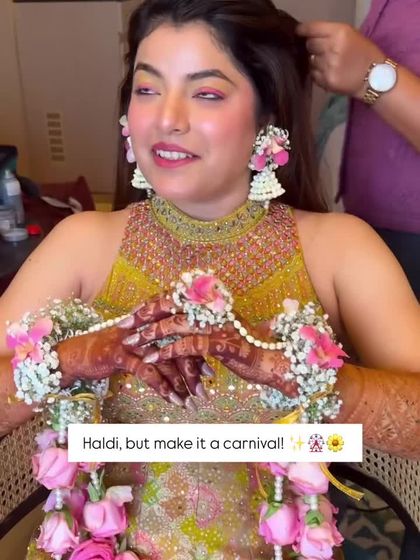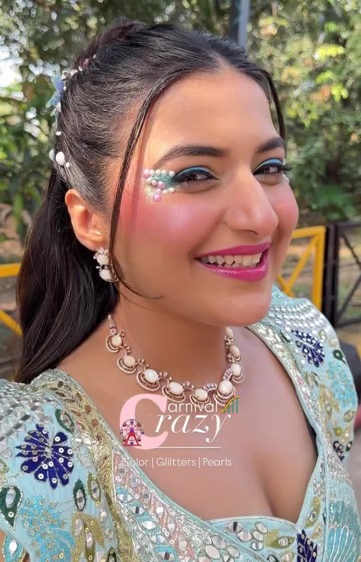 Celebrate the fun of pre-wedding festivities with these bold and colorful looks. Perfect for Haldi, Mehendi, or carnival-themed events, this collection showcases my love for creativity. Explore looks featuring graphic liners, rhinestones, playful color palettes, and unique hairstyles that are designed to be as fun and vibrant as the celebration itself.