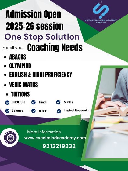 All-in-one coaching hub - We teach UCMAS Abacus classes, Vedic Maths coaching, Olympiad prep, and tuitions for classes 1-12 in all main subjects.