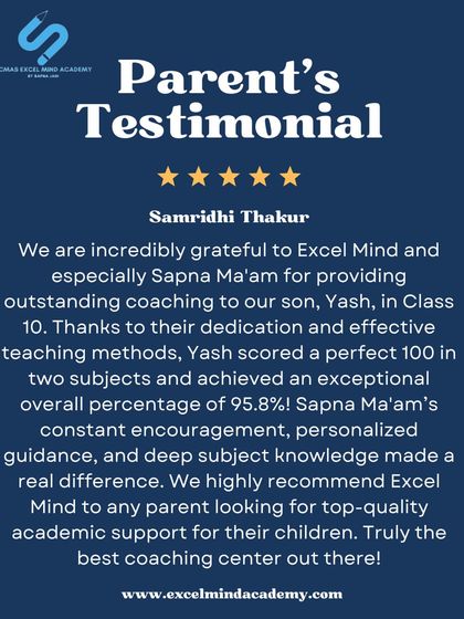 Hi, we’re Excel Mind Academy, but around here, kids and parents just call us Sapna Ma’am’s team. For us, teaching is more than marks—it's about making kids shine, not just in exams but in life. Like we always say, 'Padhai sab karte hain, lekin top wahi karta hai jiska IQ sharp hota hai!' Watching our students solve tough sums and walk out with new confidence? That’s what keeps us going. Winning the 'Well Performing Franchise' award 8 times—honestly, that’s all thanks to our hardworking team, trusting parents, and our superstars: the kids.