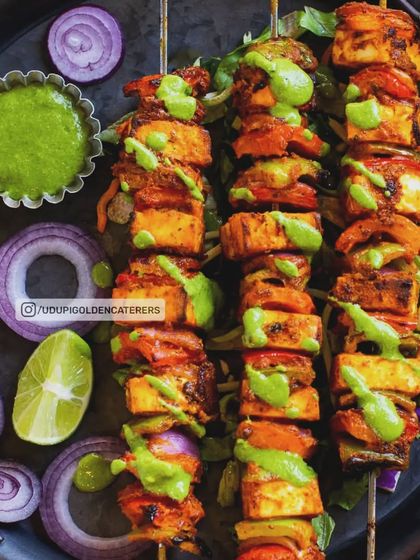 We offer full-service pure vegetarian catering for any event size, with custom menus, live food counters, and options like banana leaf service.