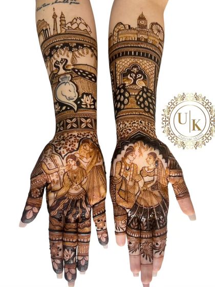 Your mehandi should be as unique as your love story. I specialize in creating personalized designs, including detailed portraits of the bride and groom, important landmarks, names, or any special symbol that is meaningful to you.