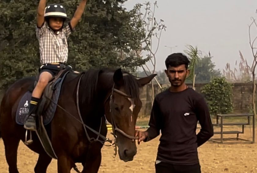Our academy is located on the scenic and secure grounds of Uma Public School in Greater Noida. We offer a spacious riding arena, a full show jumping course, and well-maintained stables for our horses.