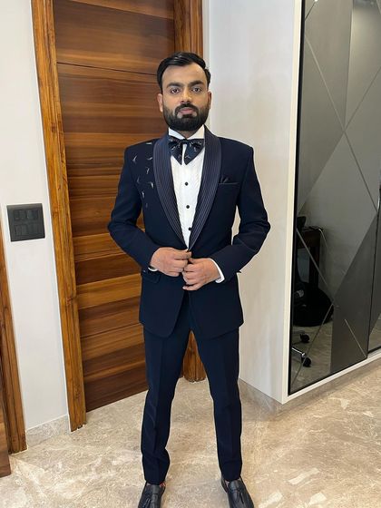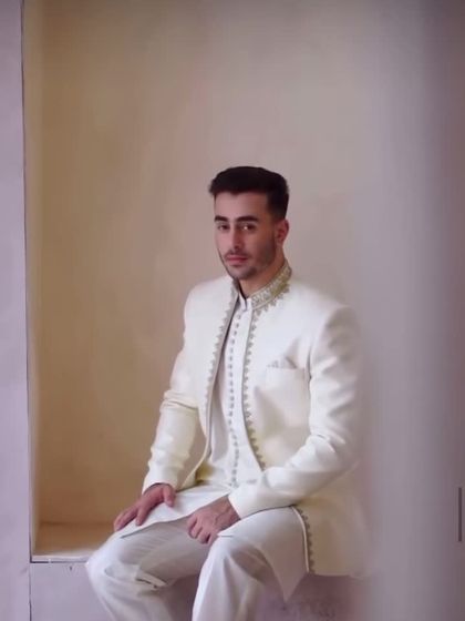 We style sharp, contemporary looks for your reception, cocktail party, or sangeet. This includes perfectly fitted tuxedos and modern suits, complete with hair and beard grooming to match the formal aesthetic.