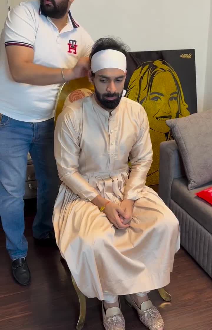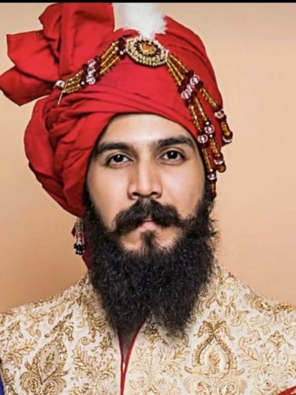 As a specialist in Sikh groom styling, I provide precise turban tying to ensure it is secure and perfectly shaped. I also assist with placing the 'kalgi' and ensuring the entire traditional ensemble is flawless.