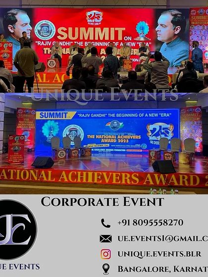 - Awards ceremony production, like the Rajiv Gandhi Global Excellence Awards - think grand stages, live feeds, panel setups.