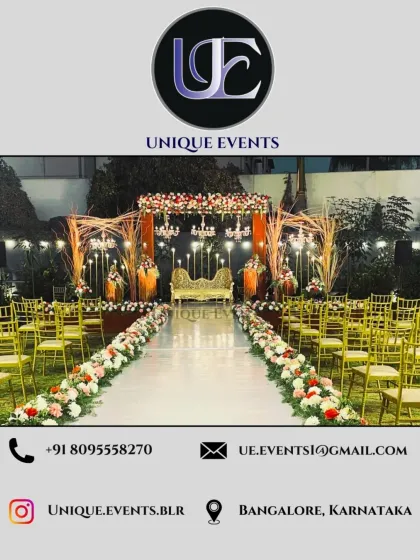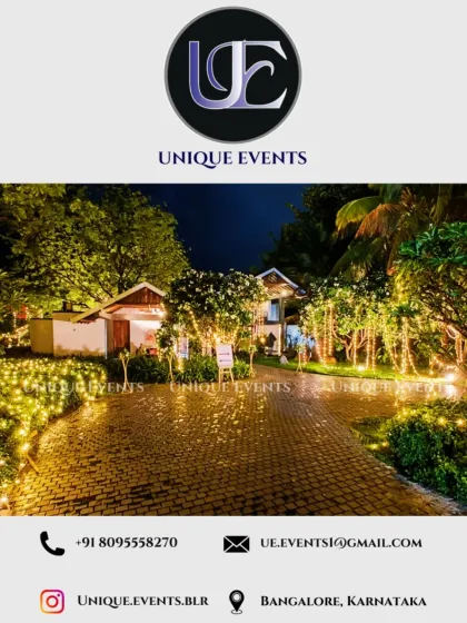 Hey, we’re Unique Events. Started out just loving the idea of making every party or shaadi (wedding) something people talk about for years. We’re all about flipping plain spaces into something wild or elegant or just plain fun – depends on your vibe. Nothing beats seeing clients walk in and go ‘wow’ – that’s why we do it. We’re Bangalore-based but honestly, we’ll travel for a good celebration.
