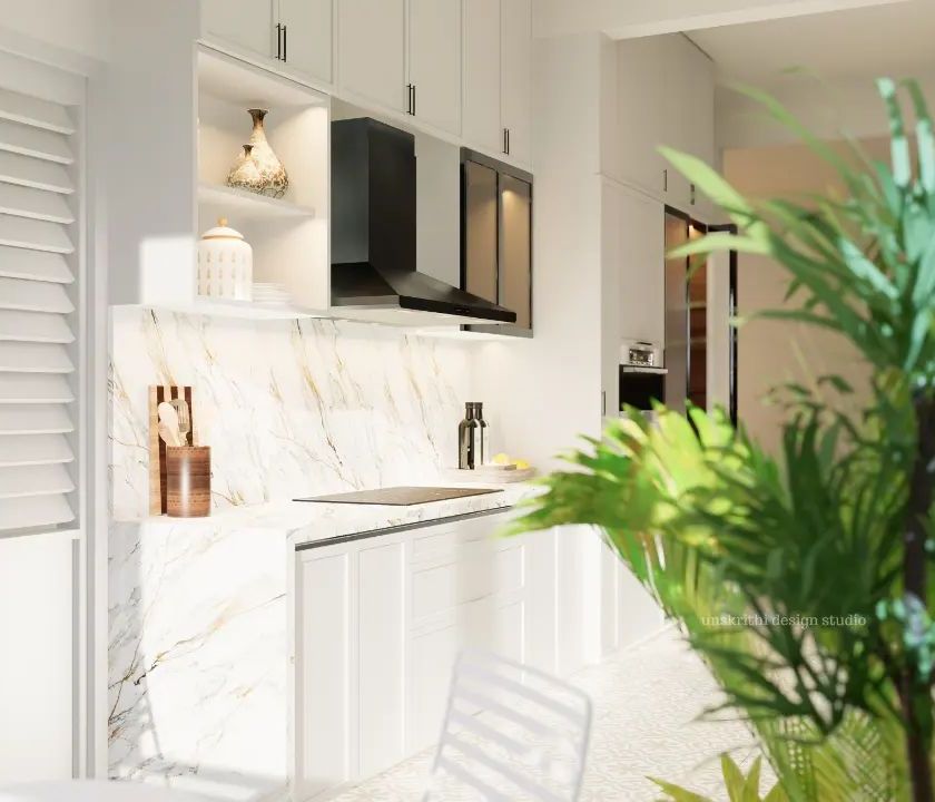 The kitchen is often the busiest room in the house, but it doesn't have to be a 'jathre'. My approach is to create kitchens that are highly functional, easy to navigate, and beautiful. This includes everything from compact kitchenettes for rental properties to full-scale luxury kitchens with integrated pantries and smart storage solutions.