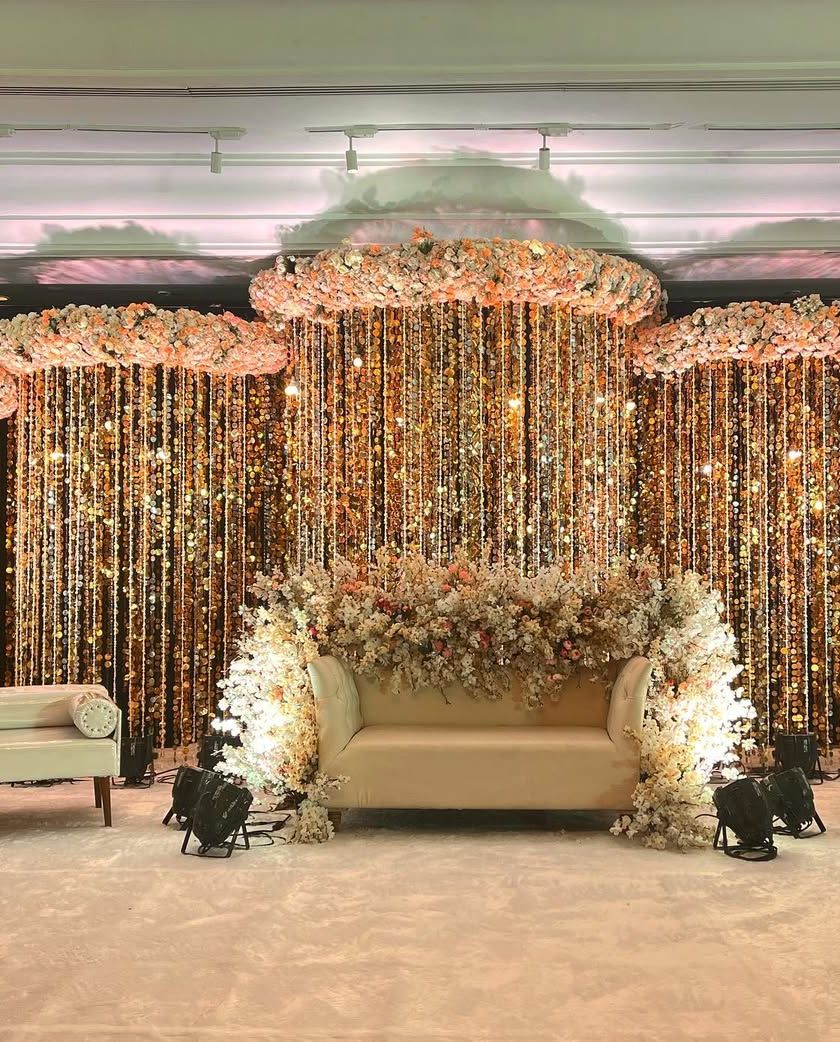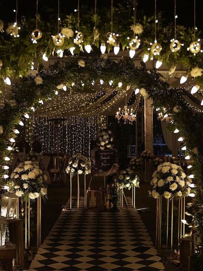 The guest experience begins with a powerful first impression. I design captivating entrances and walkways that build anticipation and set the tone for your event, using elements like floral arches, fairy light tunnels, and dramatic lighting.