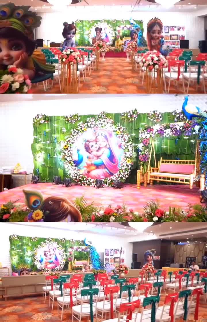 We create beautiful and meaningful setups for life's most blessed occasions, including godh bharai (baby showers) and festival celebrations. We specialize in thematic decor, such as divine Radha Krishna settings or traditional Pichwai art, to make your family's celebration truly special.