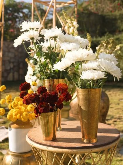 I have a deep appreciation for timeless traditions. This gallery showcases my work with classic color palettes like red and gold, incorporating cultural elements like banana leaves, marigolds, and intricate patterns for a truly royal celebration.