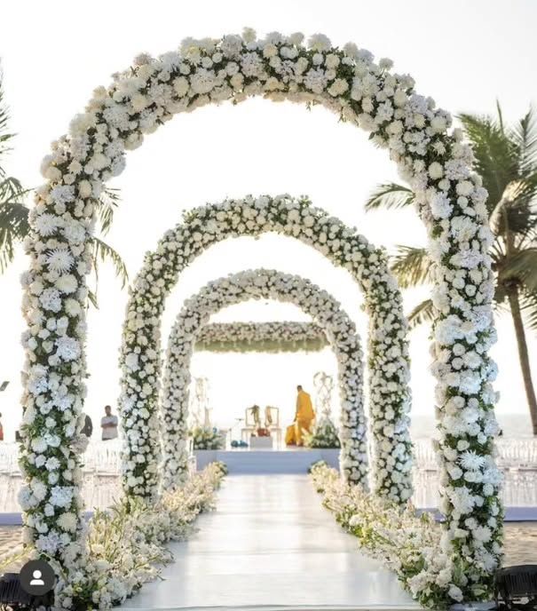 The journey to the main event should be just as beautiful as the destination. I specialize in creating immersive entrances, from romantic floral tunnels and traditional draped passages to modern, light-filled walkways.