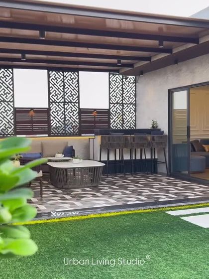 - Flooring: Mix of premium vitrified outdoor tiles (Moroccan patterns/Anti-skid) and high-grade artificial turf.