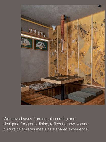 For this 1,850 sq. ft. restaurant in New Delhi, I wove together the communal warmth of Korean dining with the clean elegance of Japandi design. The layout prioritizes shared experiences with group seating and private rooms, while the material palette balances honest textures with functional solutions like integrated table grills and custom chimney systems.