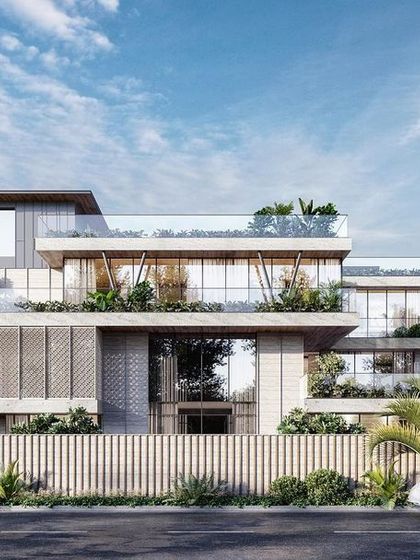 I play with big volumes (single, double, triple heights), lots of light, and indoor-outdoor living spaces. You’ll see open facades, terraces, huge windows, and greenery everywhere.