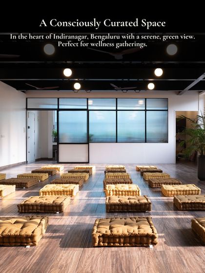 We offer a fully equipped, energetically cleansed wellness space in Indiranagar with flexible seating, unique gear like aerial hammocks and Sonorium, and support for hosting workshops, retreats, and healing sessions.