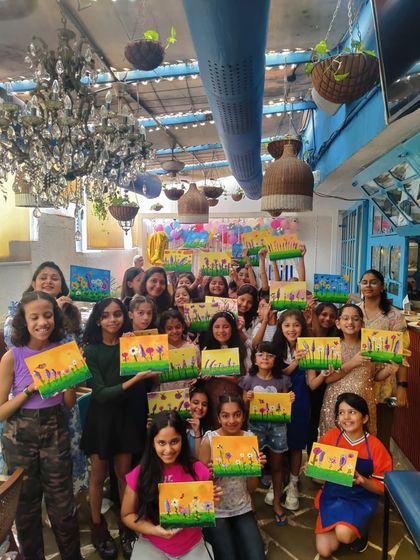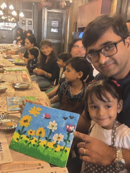 I run relaxed art classes for kids and adults where you can try drawing, painting, or crafts at my Mumbai studio or online, with all materials provided and no pressure to follow rules.