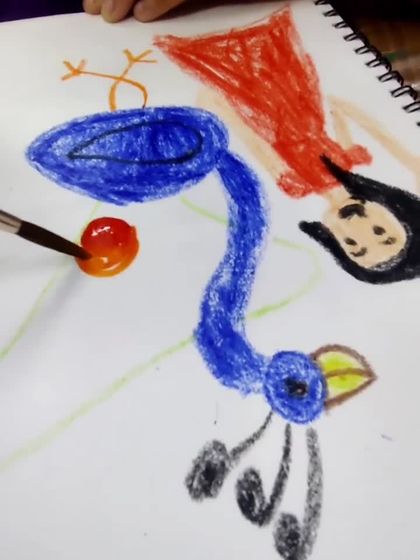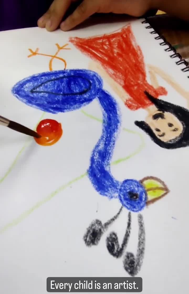 My kids' classes are all about exploration, not instruction. I provide the space and materials, and they bring the magic, drawing everything from giggling crocodiles to Ganeshas with blueberry ladoos. We use crayons, acrylics, and more to let their unique stories unfold on paper.