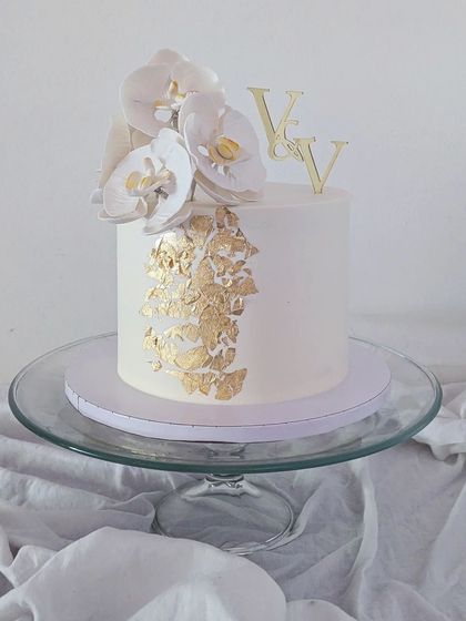 I create custom-designed cakes for milestone celebrations, including birthdays, anniversaries, engagements, and weddings. Each cake features intricate designs using techniques like sugar flowers, fondant work, gold foil accents, and wafer paper art.