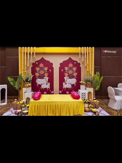 I offer a wide range of rentals to make your pre-wedding functions pop with color and tradition. You can choose from marigold backdrops, floral jhoolas, low seating with cushions, and custom welcome boards.