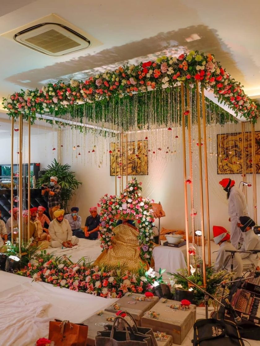 I design decor for religious and spiritual events with the utmost reverence and attention to detail. This includes creating serene and beautiful setups for Mata ki Chowki, Guruji Satsangs, Ganesh Chaturthi, Navratri, and Sukhmani Sahib Path ceremonies.