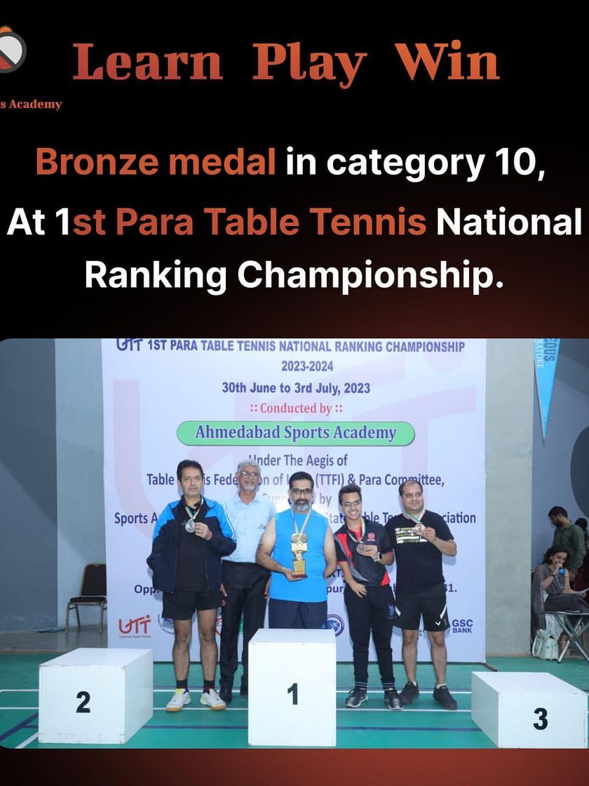 Table tennis is a sport for everyone, and I am proud to coach and support para-athletes on their journey. We celebrate every victory, like this bronze medal win at the Para Table Tennis National Ranking Championship.