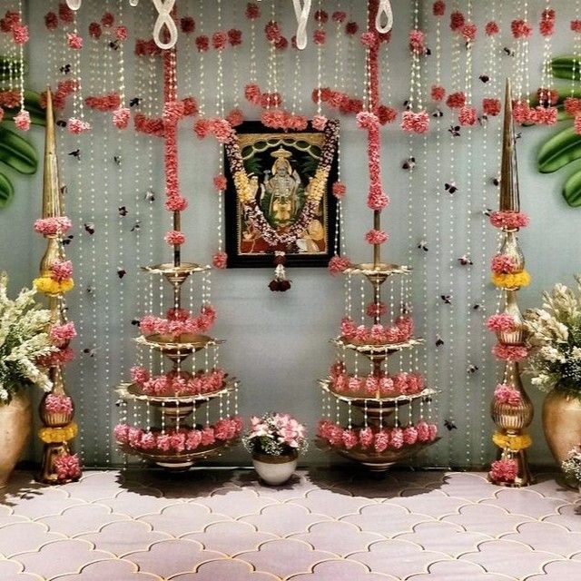 I bring the same level of care and creativity to intimate at-home functions and traditional setups. This collection features decor for home poojas and traditional 'Chappra' or palm leaf entrances, which are essential for many South Indian weddings.