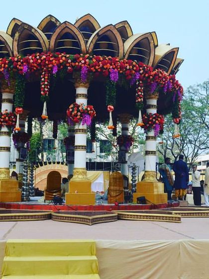- Full luxury - big stages, heavy drapes, and floral mandap decoration
