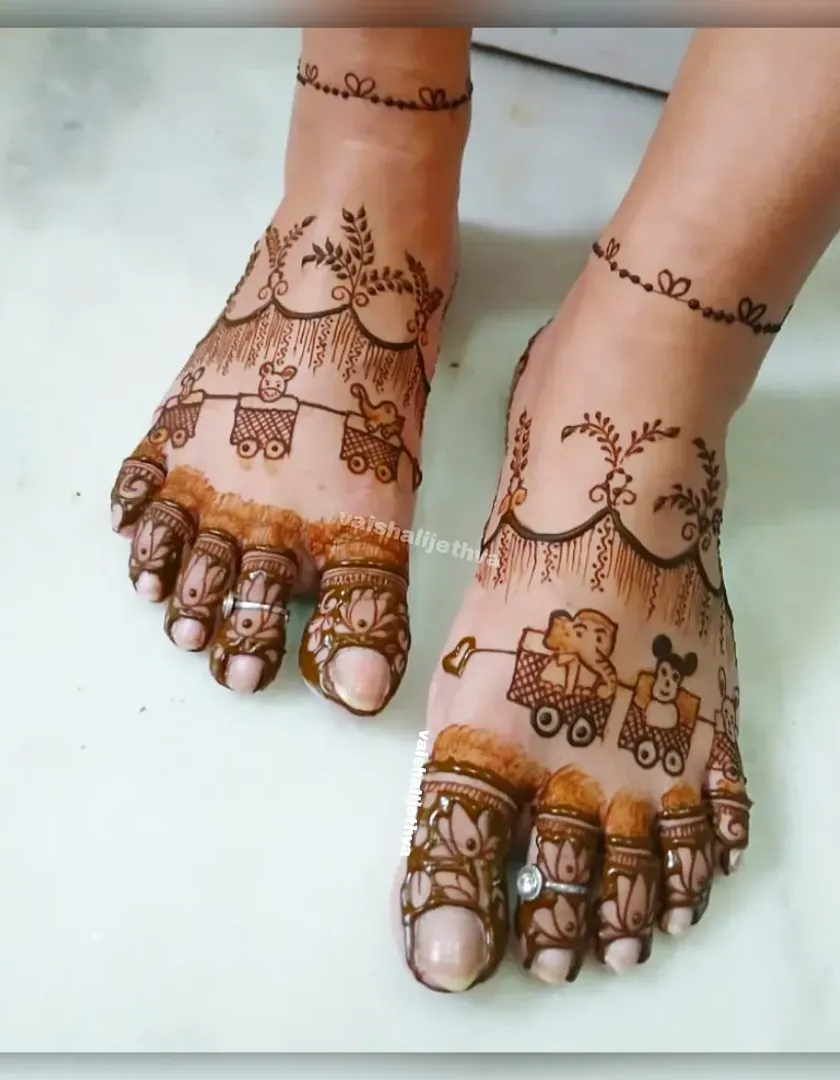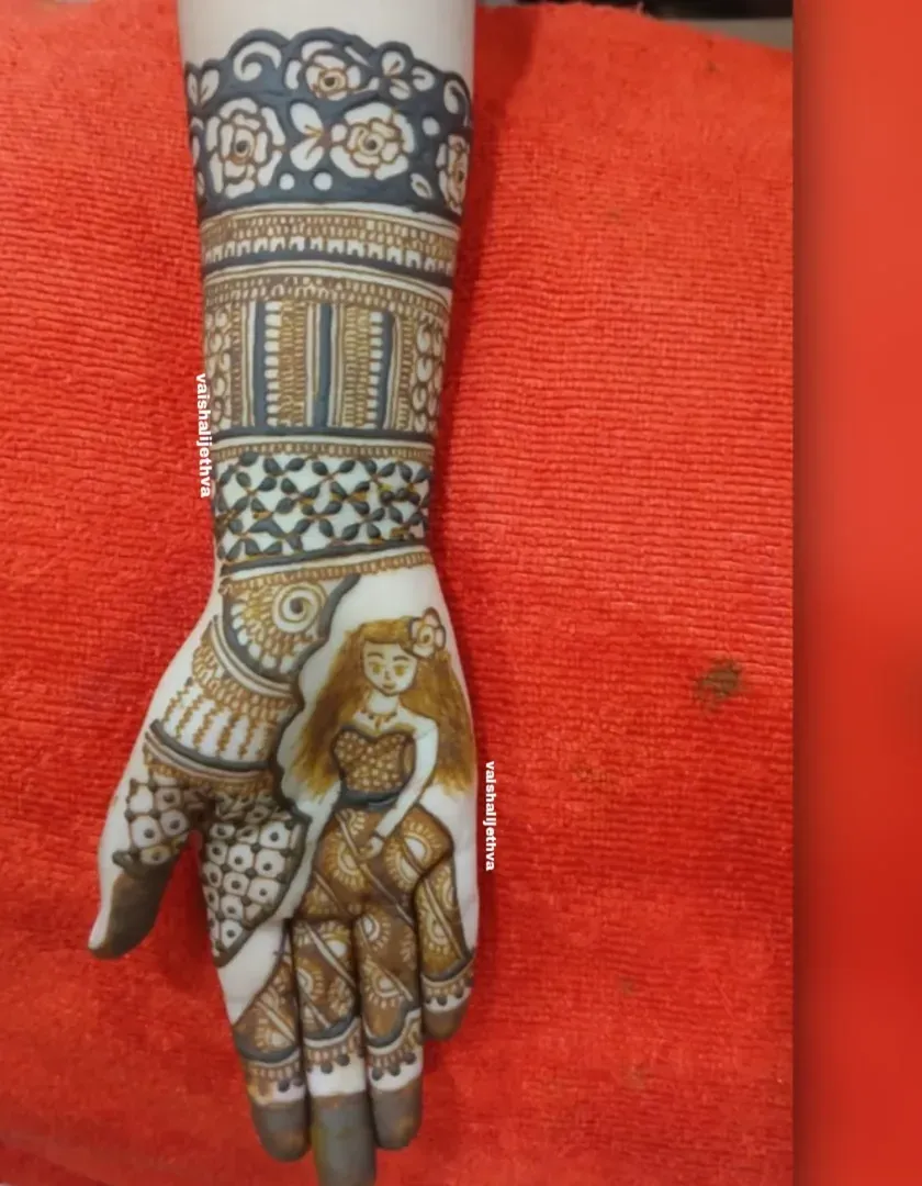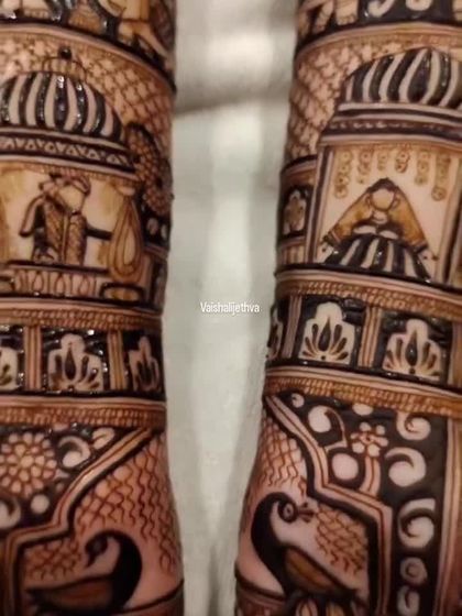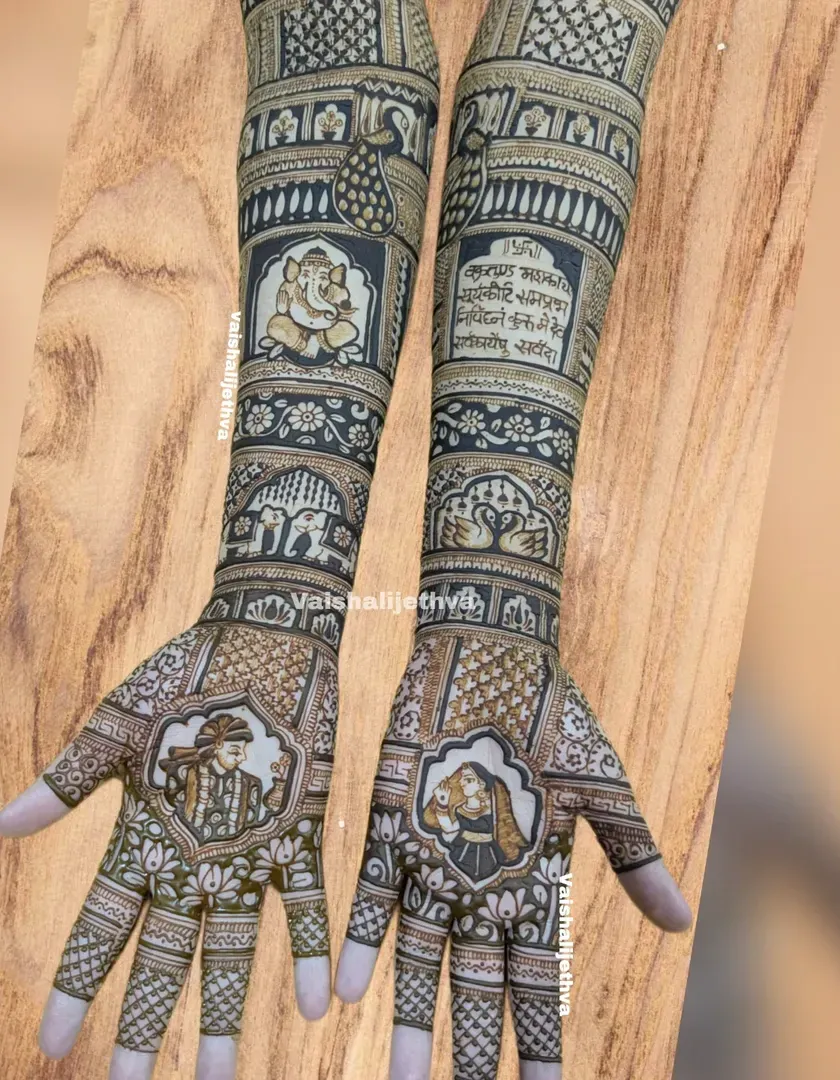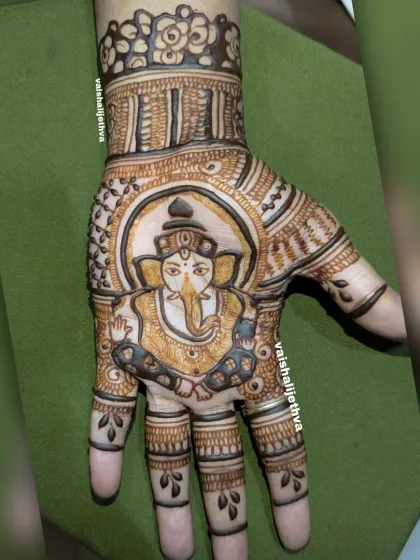 I love bringing unique ideas to life with specialized thematic art. This includes traditional Pichwai cow motifs, portraits of deities like Lord Shiva and Ganesha, and other custom figures to make your mehndi truly one of a kind.