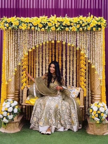 - Haldi: Classic yellow-orange vibe, marigold flower decoration everywhere.