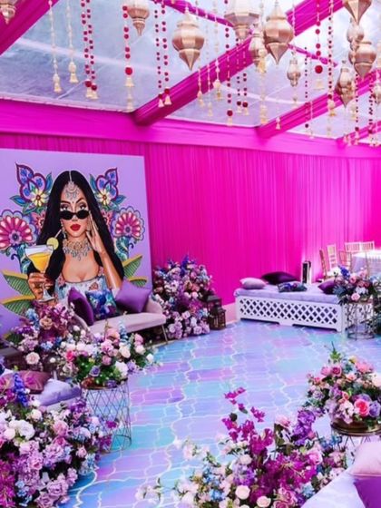 - Mehendi: You pick the mood - bohemian mehendi decoration with swings and drapes, funky pop-art, or simple pastel setups.