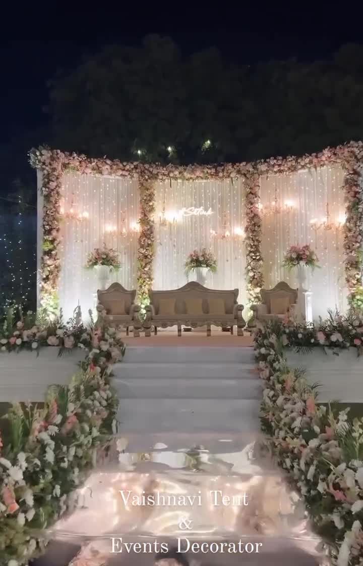 I design stages for the main events, from the wedding ceremony mandap to the reception. My work includes grand backdrops, floral walls, elegant couple seating, and custom lighting to make the focal point of your event perfect.