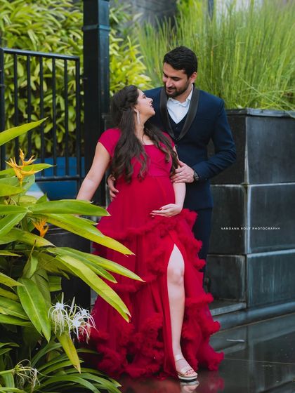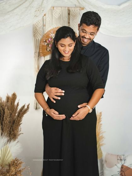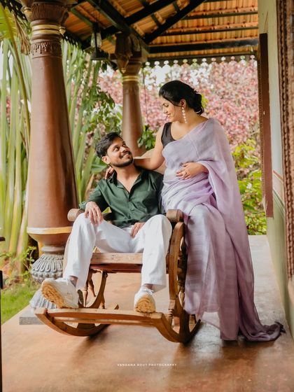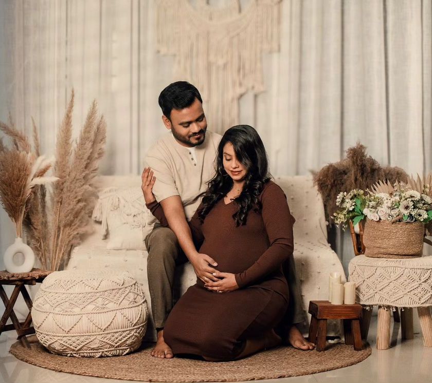 Embrace your heritage with a traditional maternity shoot. I love capturing the grace of a saree against beautiful backdrops, including classic temple architecture or elegant studio sets, for photos that are both timeless and deeply personal.