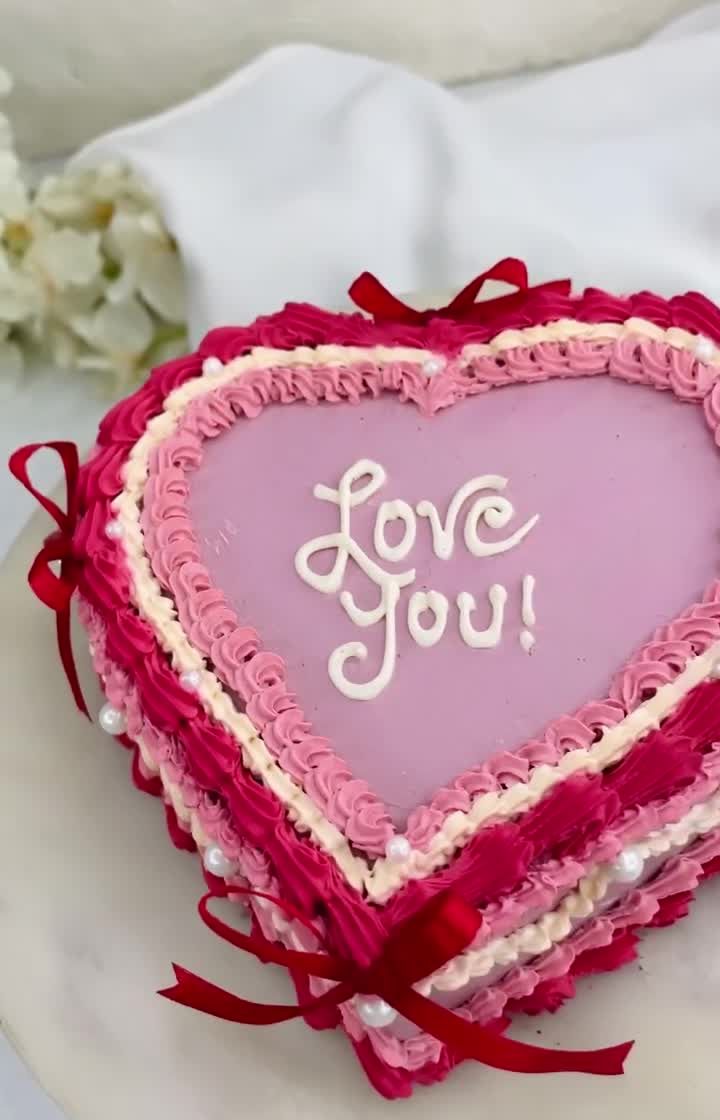 We love bringing back the charm of retro cake design with our vintage-style heart cakes. Featuring intricate piping, bold colors, and delicate details like pearls and ribbons, these are perfect for anniversaries, Valentine's, or celebrating your love story.